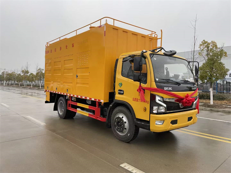 東風吸污凈化車是一種處理各類廢水污泥,將廢水污物快速無害化處理的一款半自動化高科技產品。吸污凈化車由汽車底盤、發電機組、電控系統、污水分離系統、加藥系統、疊螺脫水系統、高壓清洗系統等組成。其合理可靠的設計確保了廢水污泥處理的速度、降低了污水處理的成本。
