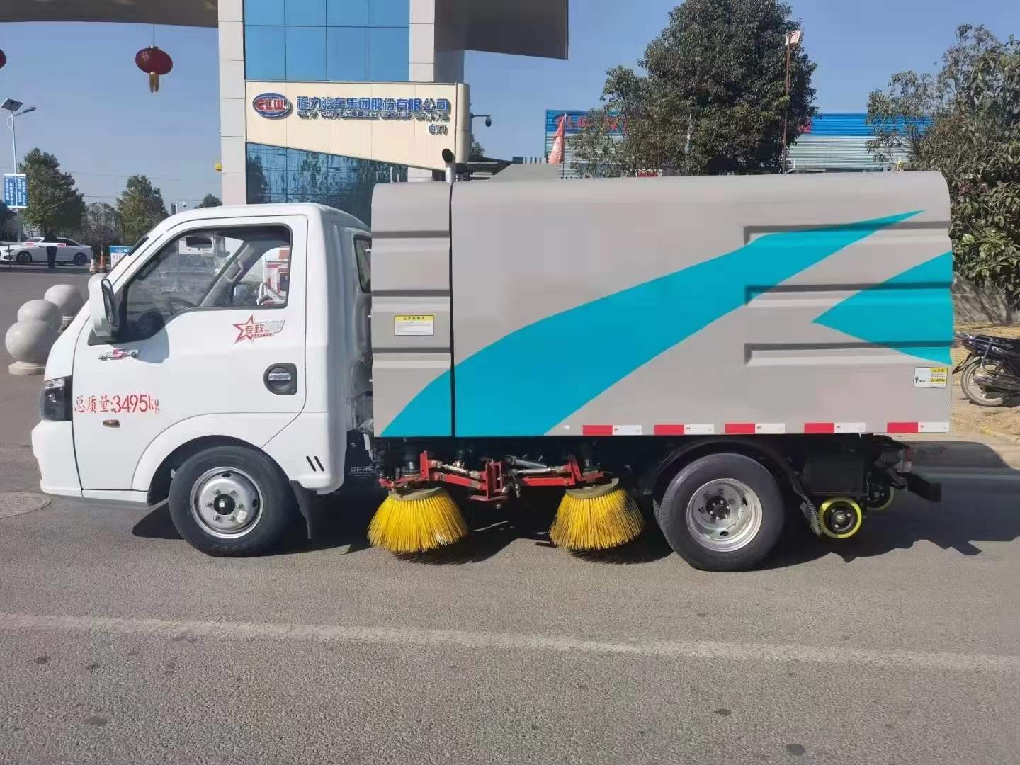 掃路車:主要是單純的掃路使用,掃盤旁邊的噴霧起到降塵的作用。