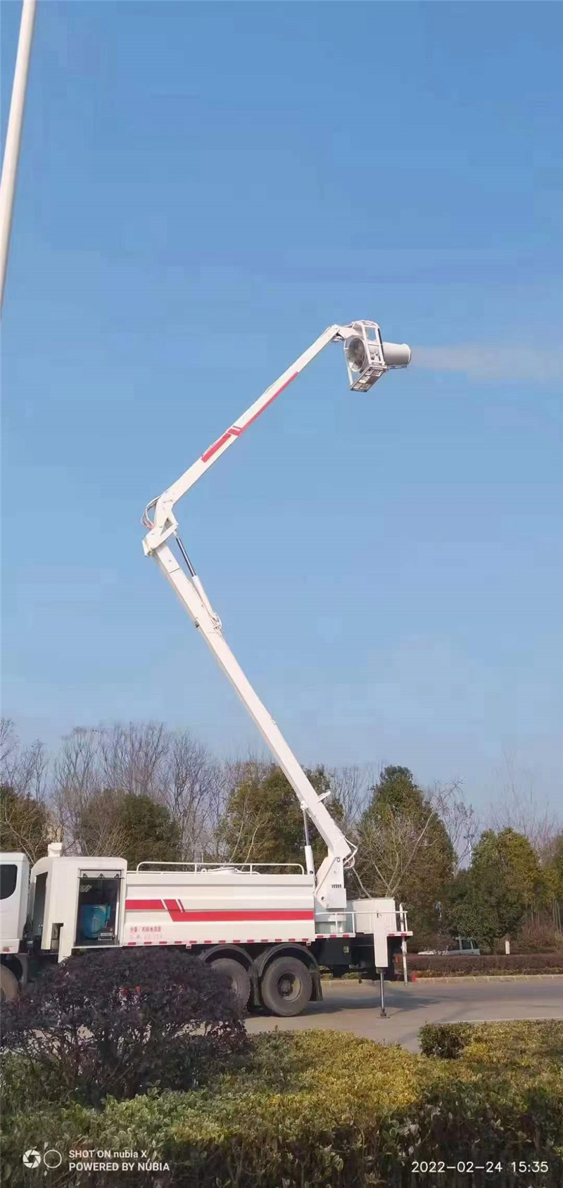 1.高空抑塵車舉升高度可達20米, 噴霧機可左右各90度旋轉。