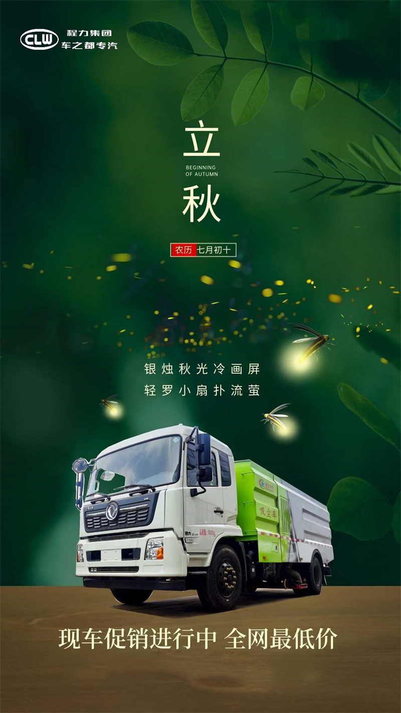 立秋了,程力集團(tuán)環(huán)衛(wèi)車廠家希望秋天的風(fēng),可以吹走夏日所有的遺憾,希望這個秋天,可以帶來很多好消息,所有的努力都有好的結(jié)果,所有的付出都有好的收獲。程力汽車環(huán)衛(wèi)車促銷進(jìn)行中,全網(wǎng)最低價。