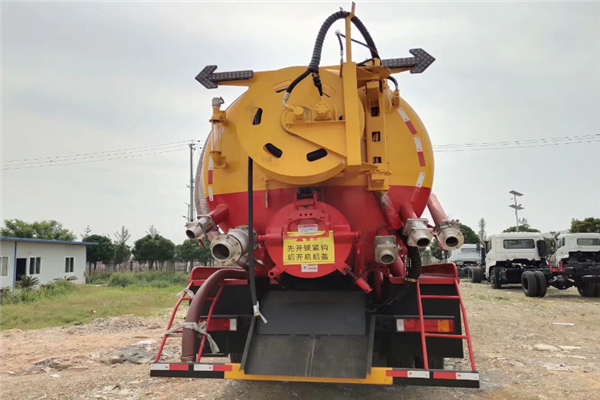 2.設(shè)備齊全,作業(yè)快捷—天津雙耀315流量高壓泵,后封頭可旋轉(zhuǎn)齒輪自動液壓絞盤,高壓管60米22通徑,耐壓22mpa,后封頭下部開600mm內(nèi)通徑液壓排污口1個,后蓋左下6寸排污閥1個,后蓋右下4寸排氣閥1個,4寸吸污閥1個,副發(fā)進氣管用125mm,不銹鋼水箱做0.8方,1個工具箱《盡量做大》,防溢流裝置,后尾部裝雙箭頭燈,清水罐頂部裝排氣閥1個,清水罐底部裝4寸排水閥1個,出水管在清水罐里面裝75mm閥門,出水管用89mm管;