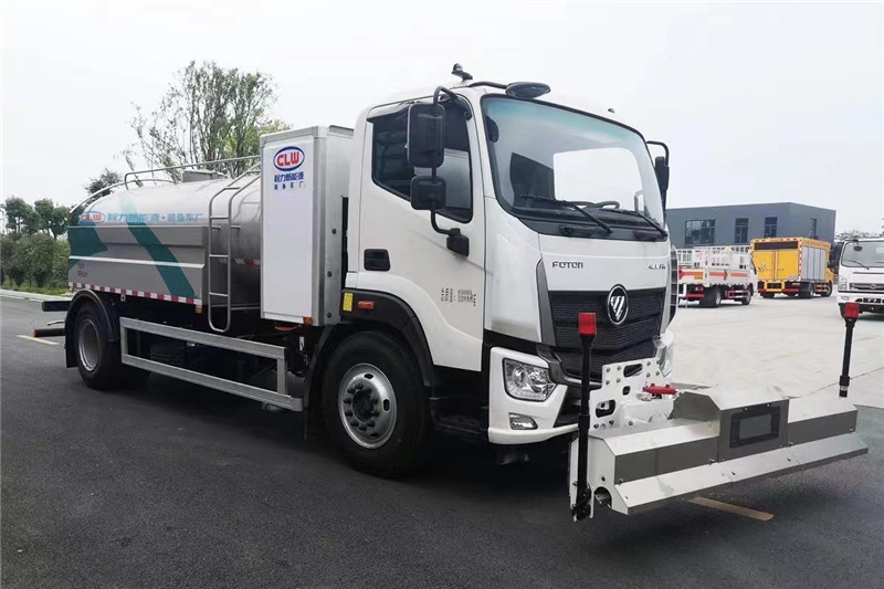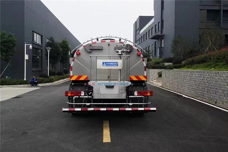 其工作原理是:利用高壓水泵產生的高壓水,經噴水架的高壓噴嘴噴出,利用高壓水流的動能,以高壓力、低流量的方式清洗,強力去污,高效節水,能將路面的頑固泥土及陳舊污漬徹底清洗干凈,高壓水經左(右)角噴噴出,清洗路緣、人行道及護欄隔離區,使用高壓噴槍還可清洗路標、廣告牌、高架路等。噴霧系統具有強大的噴霧降塵、噴灑空氣消毒劑及調節空氣濕度功能。
