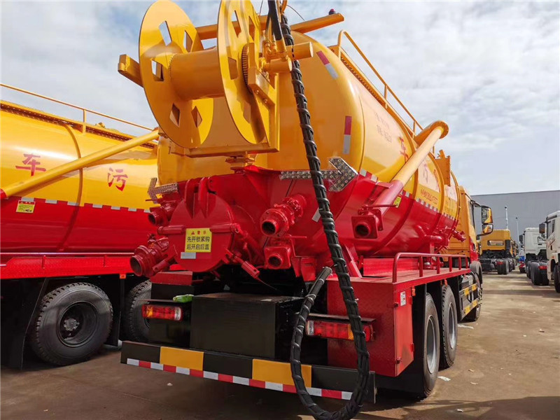 這款重汽豪瀚清洗吸污車整車長(zhǎng)12米,寬2.55米,高3.95米,車身顏色采用紅黃搭配,外觀很顯眼,辨識(shí)度很高,比較耐臟。這款車的整個(gè)上裝罐體為橫臥的圓柱形結(jié)構(gòu),一體式罐體,優(yōu)質(zhì)碳鋼材質(zhì),內(nèi)部做防腐防銹處理,前半部分是清水箱,有效容積為11.79方,后半部分是污水箱,有效容積為14.74方。整車是四軸結(jié)構(gòu),罐體內(nèi)部又設(shè)防浪隔板大大增加了行車穩(wěn)定性。