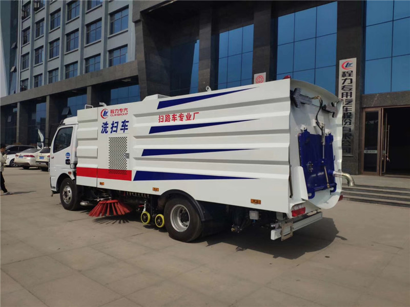 整車長6.22米,寬2.05米,高2.58米,軸距為3.365米。采用雙層內膽不銹鋼結構,結構穩定,而且可抗一般性腐蝕,長時間使用不易變形。箱體下方中置4掃盤,每個掃盤由24把小PP刷絲組成,耐磨性能好,清掃力度強。作業時由掃盤上方的馬達帶動,最高轉速可達到約80r/min。另外掃盤上還配備了噴水架,遇到頑固污漬或者灰塵較大時,可噴霧狀水,便于清掃也能杜絕揚塵污染。