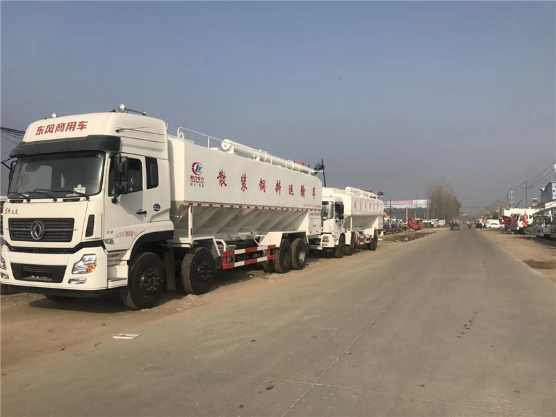 東風天錦小三軸30方15噸散裝飼料運輸車有著性能可靠、輸送量大、操控方便、機動性強、對物料無污染等特點,結構簡單,車輛的箱體選用優質鋼材,采用無縫焊接工藝制成,整體設計分為上下兩個層次,在保證飼料不被污染的情況下,使整車的卸料過程更加徹底。