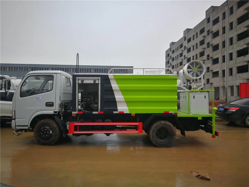 國六東風(fēng)D6多利卡5噸灑水車工作效率約為普通灑水車的30倍。一臺(tái)噴霧降塵車的工作直徑可覆蓋4個(gè)標(biāo)準(zhǔn)足球場(chǎng)。水箱中的水經(jīng)過霧化后,由高壓風(fēng)機(jī)噴出,水霧顆粒極為細(xì)小,達(dá)到了微米級(jí),其吸附力也增加了3倍,耗水量卻降低了70%,遭遇霧霾天氣、空氣質(zhì)量PM2.5嚴(yán)重超標(biāo)時(shí),進(jìn)行液霧降塵、分解淡化空氣中的顆粒濃度、將飄浮在空氣中的污染顆粒物、塵埃等迅速逼降地面,達(dá)到清潔凈化空氣的效果。