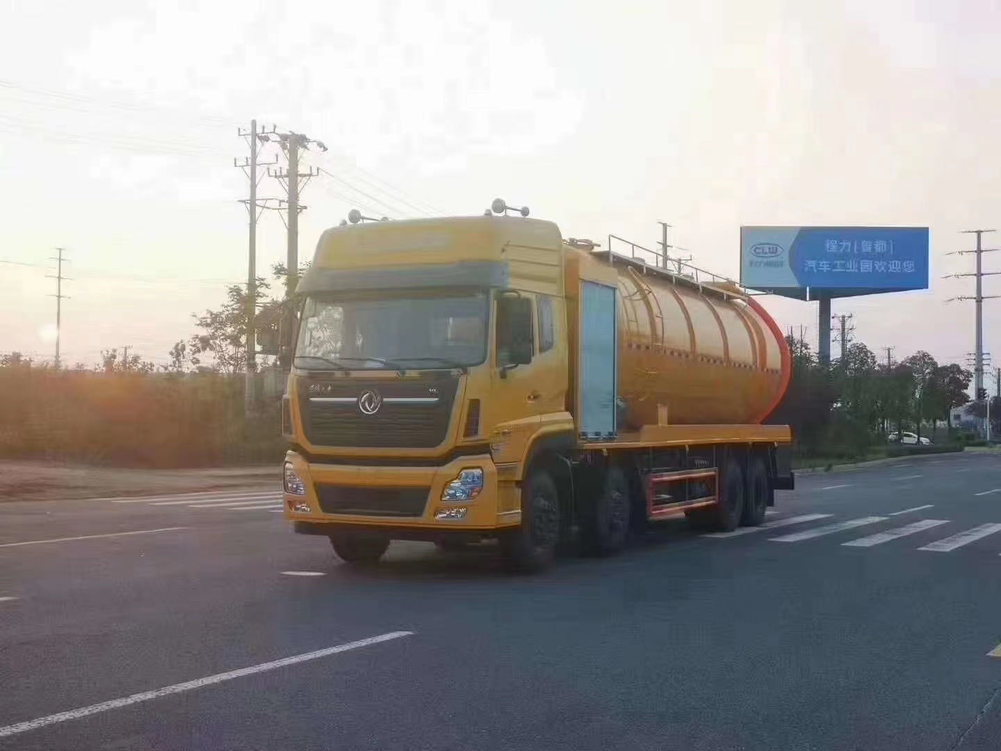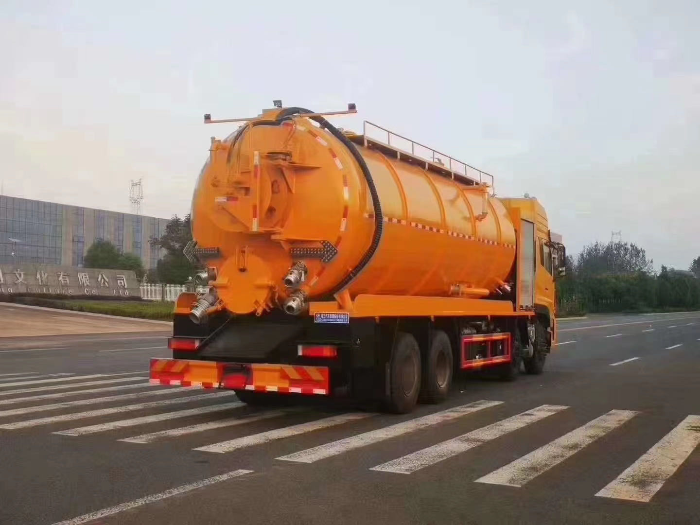 東風天龍290馬力后雙橋上裝配置:罐體容積:22立方,罐體內底部加裝不銹鋼底板1.2米寬,頂部兩側做碳鋼防滑平臺護欄,罐體及封頭厚度:8mm,清水罐用污灌口做,污水罐用水泥罐口,清水罐消防栓進水口在副駕駛一側《兩頭用接口,中間用白色軟管連接》,水污互通,視糞窗左右各一個,清水罐、污水罐內各做爬梯一個,副梁選用橡膠墊,中置頂,安裝限位閥。