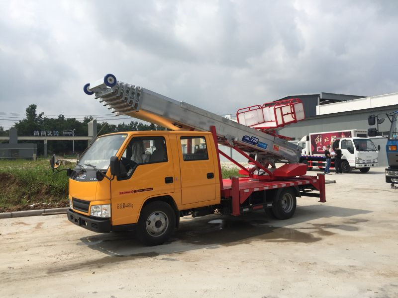 高空作業(yè)車的底盤品種很多,有東風(fēng)、福田、解放、江鈴、慶鈴等,其中用的多的是東風(fēng)雙排福瑞卡高空作業(yè)車、江鈴雙排高空作業(yè)車、慶鈴雙排高空作業(yè)車。今天給大家?guī)淼氖菛|風(fēng)雙排高空作業(yè)車。