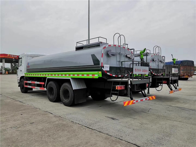 該車罐體用4MM碳鋼板制作,罐內隔板具有防波作用,整車帶一個專用灑水泵,灑水寬度14米,射程28,配備2個前沖、2個后灑、2個側噴、帶1個后工作平臺,平臺上安裝1個綠化灑水高炮(灑水炮可全方位旋轉,可連續調成直沖狀、大雨、小雨、毛毛雨,霧狀可調節沖洗高大樹木),引水時間<5min,流量90m3/h。帶1個消防接頭,帶原裝空調、帶1個自流閥、1個過濾裝置、人性化爬梯及側防護欄,安裝灑水音樂喇叭。