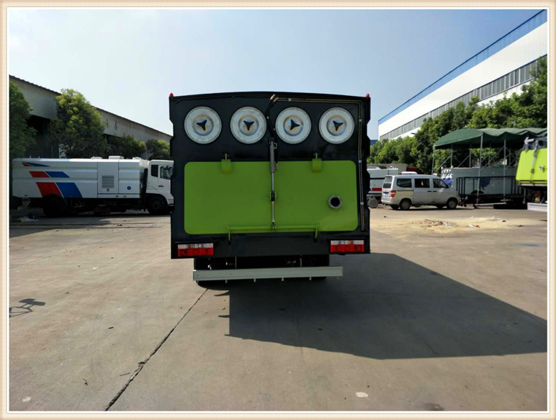 該車采用滾動膠輪三點浮動支撐、能適應不同道路表面的清掃要求,屬國內首創。所有緊固件均采用鍍鋅處理,掃盤、吸嘴等結構件均防腐防銹處理,附著力強,涂層耐腐、耐候性強;垃圾箱采用雙層結構,堅固、耐用。內膽采用不銹鋼材料制作,結構強度高,不銹蝕;該車箱體有效容積16立方,7.5立方垃圾箱,8方水箱.前沖側噴中噴后噴霧側沖洗車水槍垃圾箱自潔裝置)、高壓路沿清洗噴頭,威龍低壓泵,(前沖)不銹鋼垃圾箱、不銹鋼高壓管路,德國控制器西門子電器原件、水箱均帶防溢或低水位報警裝置