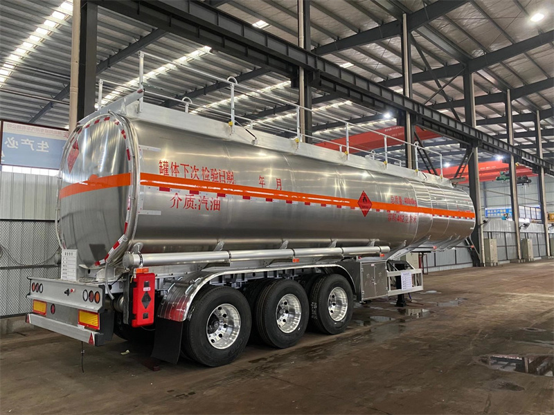 鋁合金半掛運油車配置:三軸雙胎直掛,富華13噸空氣懸掛帶提升,28噸雙聯動支腿,90牽引梢,1200正星969真空胎鐵鋼圈,帶ABS,罐體采用鎂鋁合金5083制作,厚度約六厘米,封頭厚度七厘米。