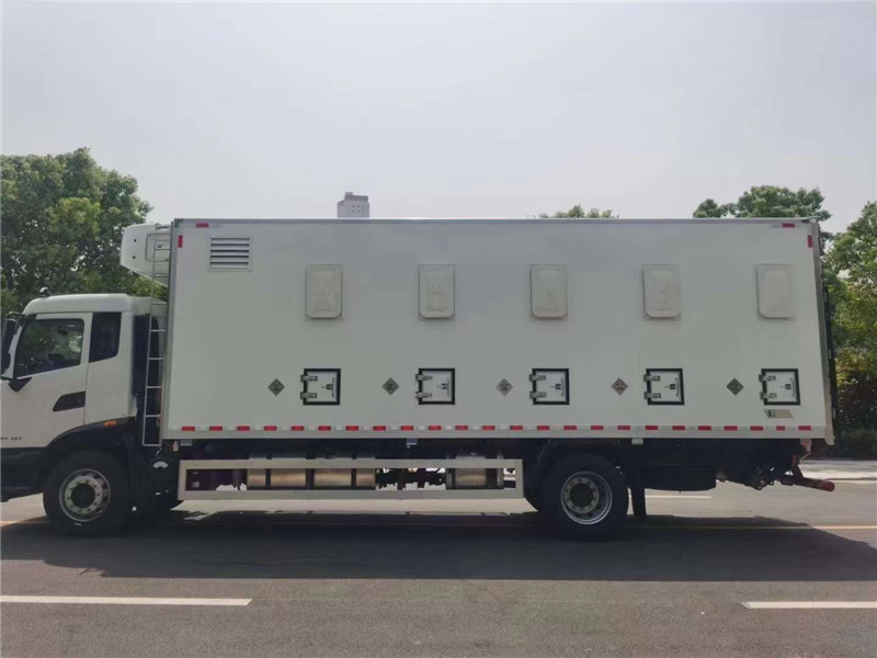 車廂達到前后左右無死角換氣,保證雞苗高成活率,配備電控監測系統,可直觀觀察車廂內的溫度及二氧化碳濃度等,方便司機及時調整運輸狀態,保證雞苗運輸安全。