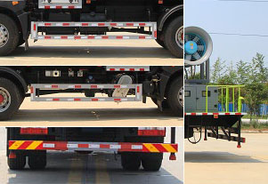 專用裝置為抑塵霧炮,用于城市抑塵。整車長/軸距/后懸對應關系為(mm):7770/3950/2560;8680/4500/2920;8680/4700/2720;8980/5000/2720;9280/5300/2720;9580/5600/2720,連接方式:左右側面采用焊接連接,防護材料:Q235B碳鋼。后下部防護采用焊接連接,防護材料:Q235A碳鋼,后部防護斷面尺寸(mm):120×50,后部防護離地高度(mm):450。ABS系統生產廠家,型號 :焦作博瑞克控制技術有限公司,J ABS。
