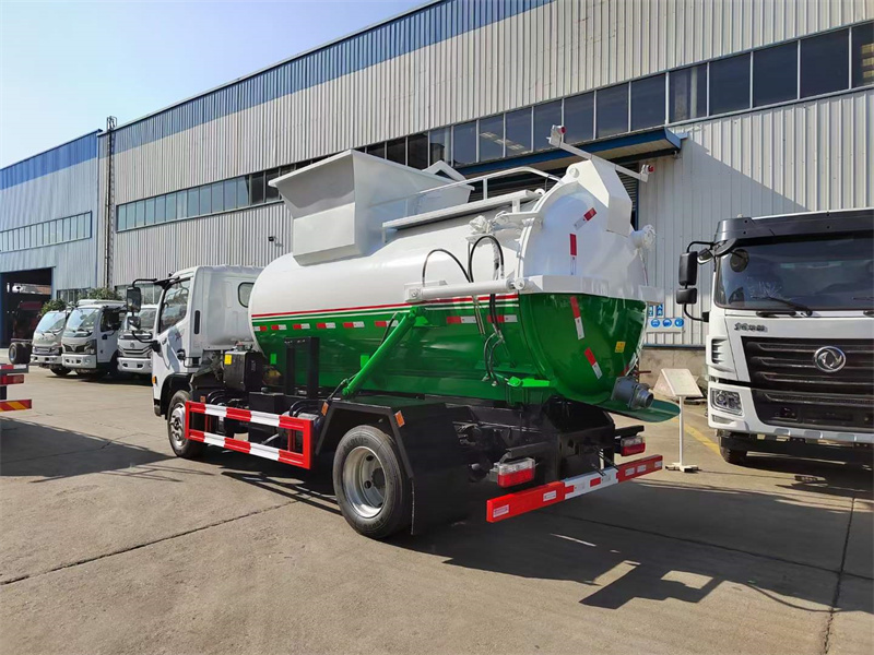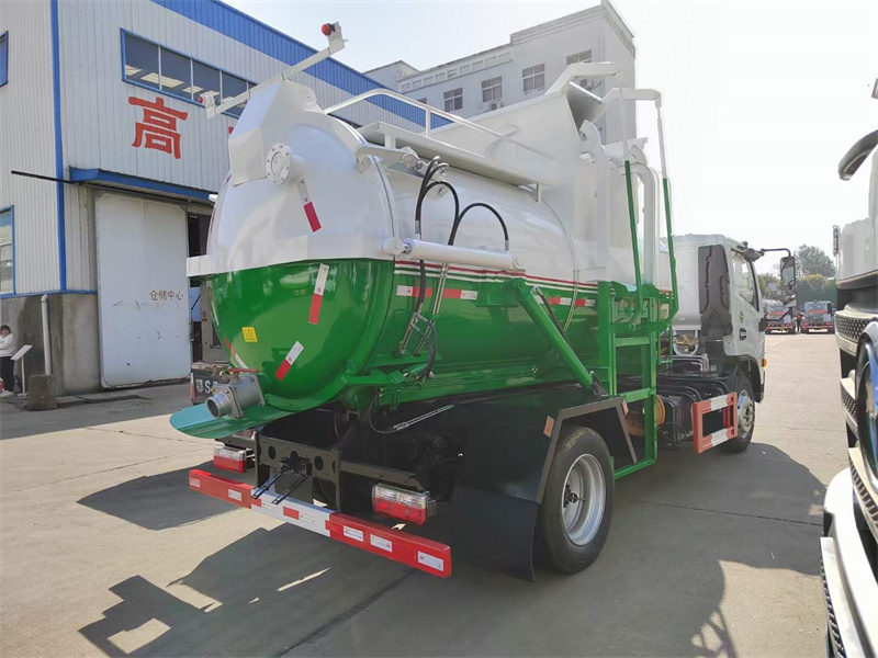 上裝配置:圓型罐體,采用武鋼優質碳鋼制作,罐體容積約7.5立方米,罐體4mm厚,后蓋液壓自動開啟,尾部排污口為100mm球閥,拉桿式提升機,加裝清洗裝置,帶駕駛室內外電控操作系統。
