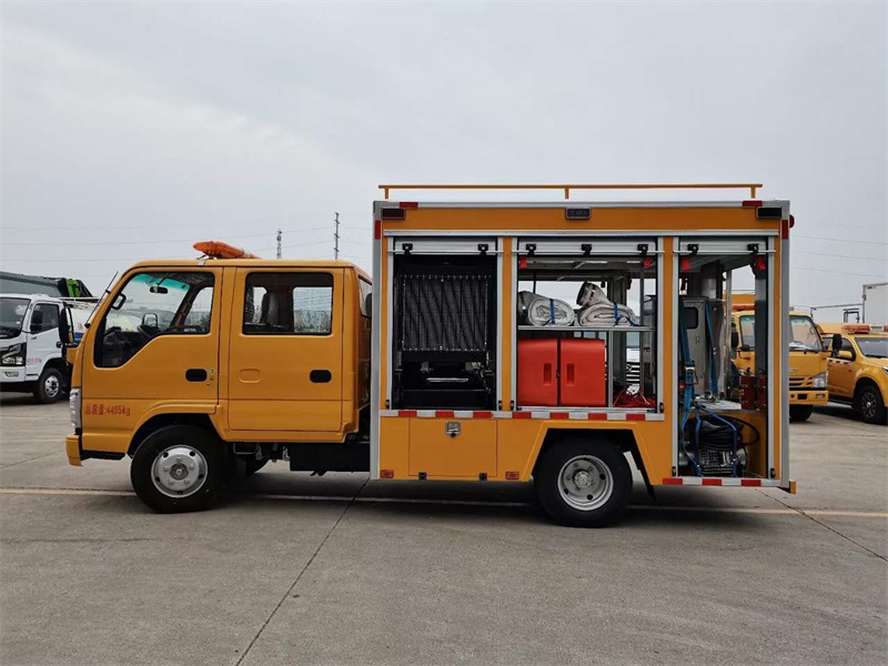 五十鈴雙排救險救援車,箱體內置玉柴60kw發電機組,1000立方/h便攜式潛水泵,單排500立方/h,60米水帶!