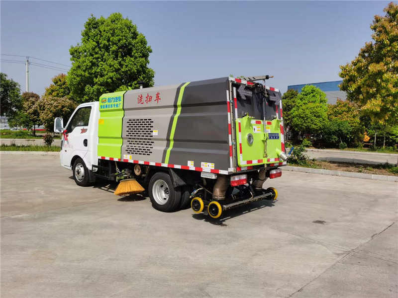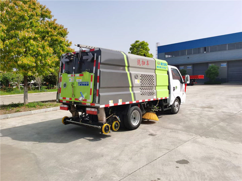 程力洗掃車廠家直接送貨上門,途逸洗掃車使用不銹鋼水箱1.5方、不銹鋼垃圾箱1.8方,配備玉柴60馬力副發動機,中置兩掃盤,后置吸盤,廈門南超自動離合器,高品質免維護離心風機,CAN電控系統,前掃避讓功能,隨車配備雙向操作按鈕,高壓槍管道配有1.5米旋轉擺臂,清水箱加裝低水位報警系統,垃圾箱內部加裝污水箱自溢系統。