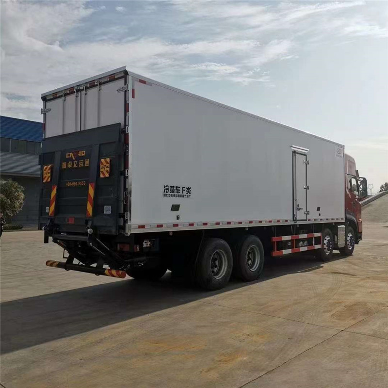 (2)廂板質材?:內外板壁?選用國質優內?2.2mm玻璃鋼(不吸光、隔熱性好、硬度強、抗氧化);中保間?溫層為XPS擠聚塑?笨板或者PUR聚酯氨?板;廂體度厚?8CM。地板采用鋁板紋花?,門邊條采用膠橡式宮迷?密封條。