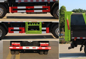 該車安裝提升機,液壓機構等,用于餐廚垃圾的收集;防護材料:Q235B碳鋼,連接方式:左右側面防護采用焊接連接,后下部防護采用焊接連接,后部防護斷面尺寸(mm):120×50,后部防護離地高度(mm):420。整車長/軸距/后懸關系為(mm):5780/3308/1417,5780/2950/1775,5500/2700/1745。隨底盤選裝駕駛室,ABS型號/廠家:ABS/ASR-12V-4S/4M/襄陽東風隆誠機械有限責任公司。