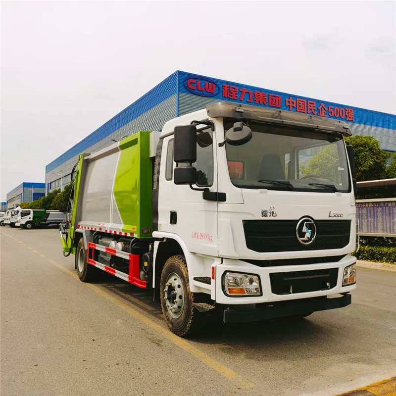 程力環衛清洗廠公告型號程力牌CL5182ZYS6HQ型壓縮垃圾車,陜汽14立方壓縮垃圾車發往廣東茂名,新款德龍L3000平地板駕駛室,氣囊座椅,電動門窗,濰柴220馬力,陜齒八檔變速箱帶,漢德10噸級后橋,1000鋼絲胎,箱體采用機器人自動化焊接工藝,江蘇飛達油缸,中梅多路閥,皖液油泵。