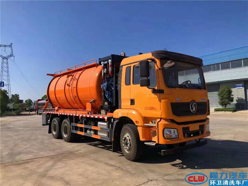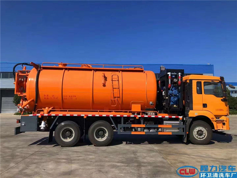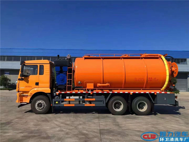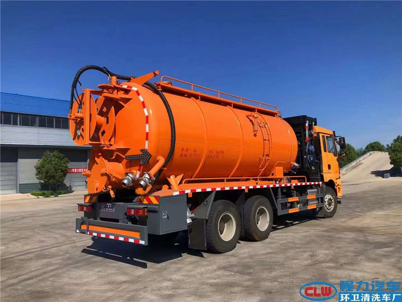 程力清洗吸污車公告型號CL5259GQWS6HQ型市政搶險救援車,整車尺寸10100*2550*3760,M3000標準駕駛室(M)、液懸壓?置、空氣主座椅、電動空調、動電?搖窗機、中控鎖、WP7.300E61(箱式+流直?空濾器)速變?箱8JS125T、MAN 5.5T前橋、11.5T后橋、850×270(8+4)、300L油箱、輪胎11.00R20。上裝用選?武優鋼?質板鋼?制作,罐容體?積8個厚,容積21立方,清容水?積7立方,其余污水,水帶?污互通,體罐?底平部?鋪不銹鋼底板,裝安?品孚330高壓泵,收管放?加流節?閥,雙進水,大過濾,氣帶?吹水,尾液部?壓卷盤帶600開快?口,頂部安裝自研主?發新式防溢閥,噴電?四門氣?副發動機,采用柴濰?動力420-258水循環泵,余其?標配。