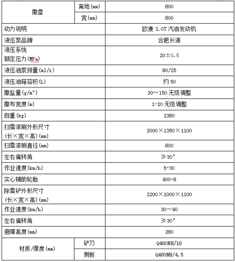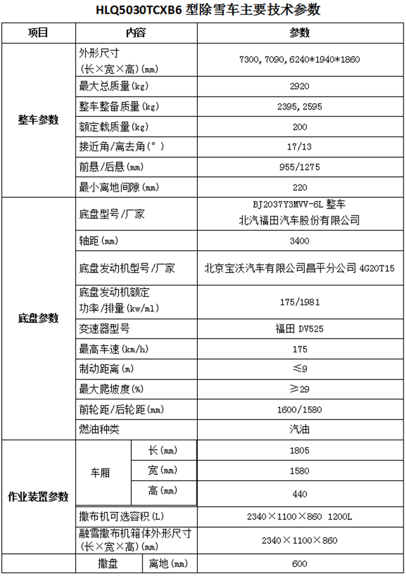 整車型號:HLQ5030TCXB6型除雪車